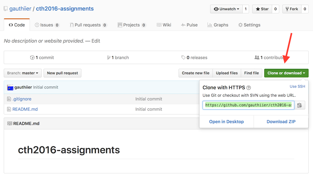 If you have followed the previous section, you should now have a repositroy on your machine which is linked to your github account. Let's assume that your repo is named cth2016-assignments/ and resides on your Desktop.